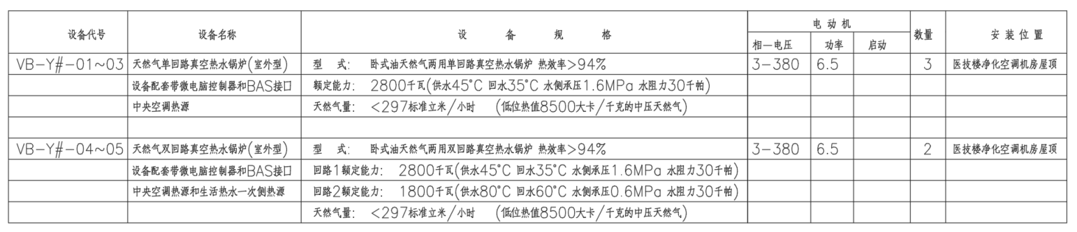 【招标内容】:包括3台卧式天然气单回程真空热水锅炉,2台卧式天然气双回程真空热水锅炉,电控箱,就地及远程监控、控制设备及系统的优化设计,制造及运输,装卸至现场指定场地,到货验收,设备就位,指导安装、调试、试运行,验收、培训及质保期内的售后服务等工作。