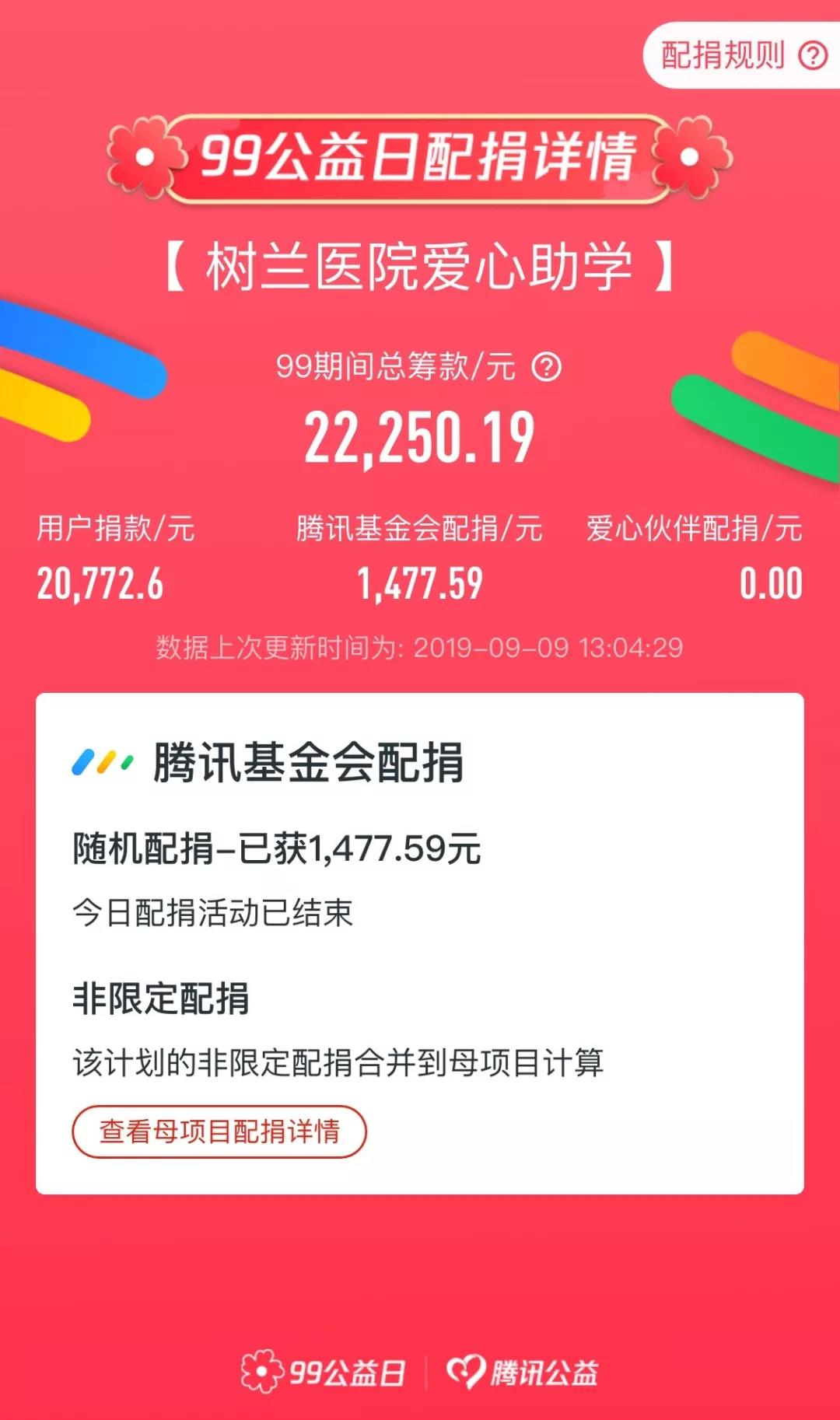 树兰(杭州)医院为更好地协助“小桔灯”助学项目,呼吁社会爱心力量参与帮助器官捐献者困难家庭,已经成功通过 “ 99公益日”的腾讯乐捐平台,为尚在就学阶段的器官捐献者困难家庭孩子筹集助学资金22250.19元。