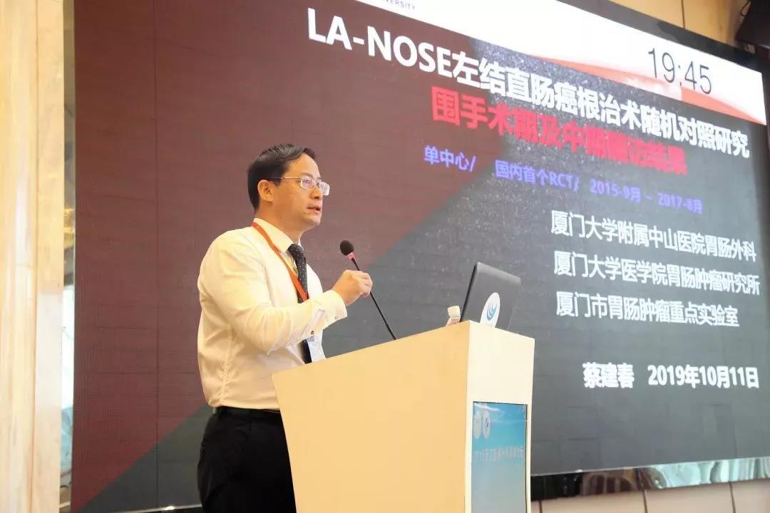 厦门大学附属中山医院院长蔡建春教授讲授《LA-NOSE左结直肠癌根治术随机对照中期结果》。